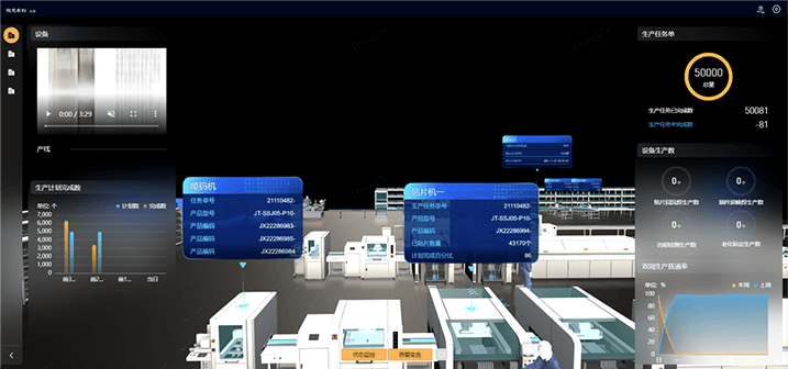 数字孪生可视化平台为设备、系统、人、料、货在数字空间建立实时镜像,任何人都能通过3D可视化界面看懂物料实时轨迹、机床作业人员动画、生产状态实时变化、机床实时工作状态等业务数据和态势,所见即所得。