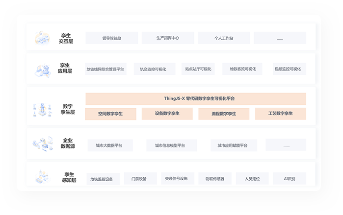 ThingJS-X零代码开发平台,应用与开发同平台交付,无需烘培直接创建孪生体,修改孪生场景,形成智慧地铁应用,客户现场配置智慧地铁业务,即改即用